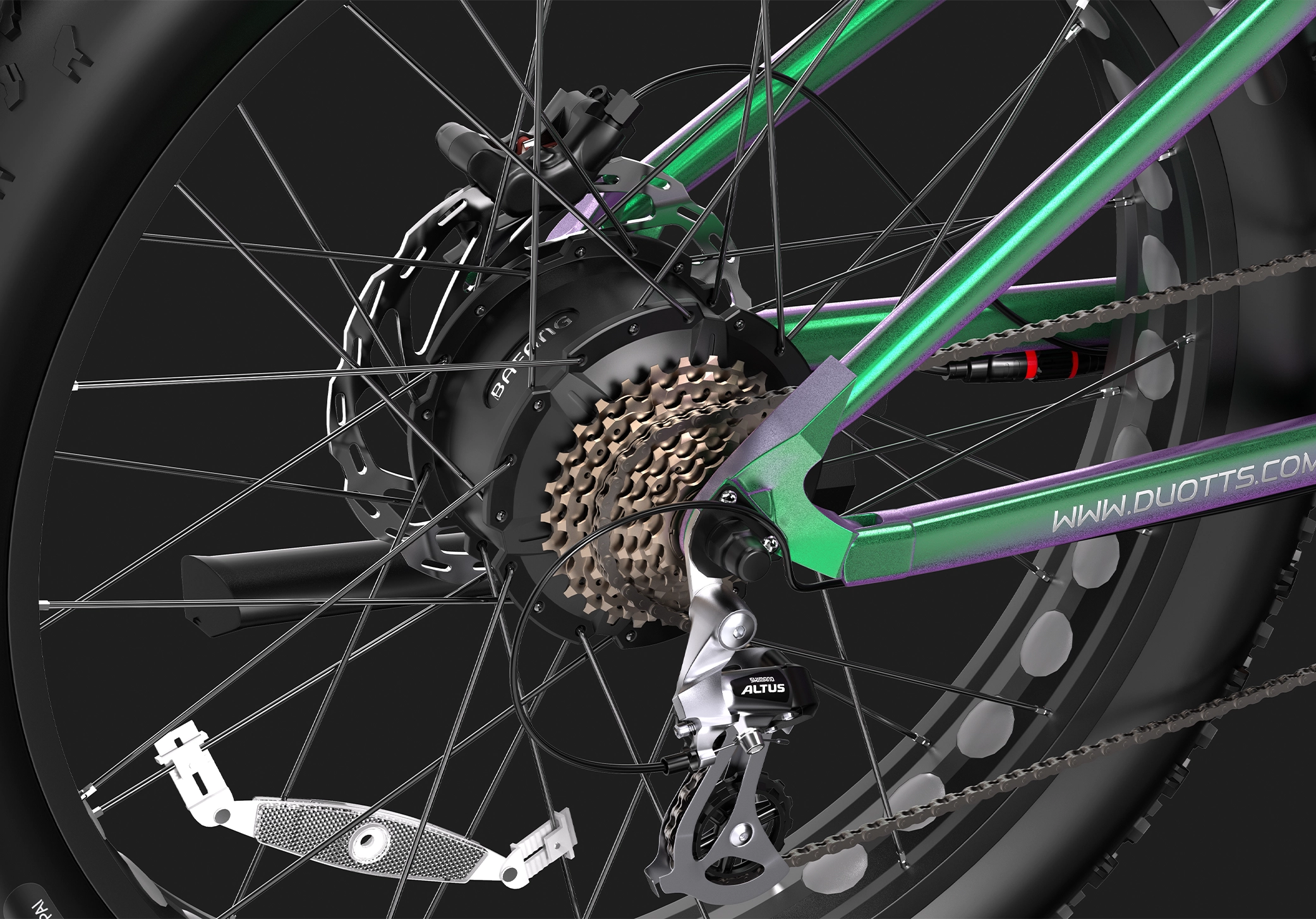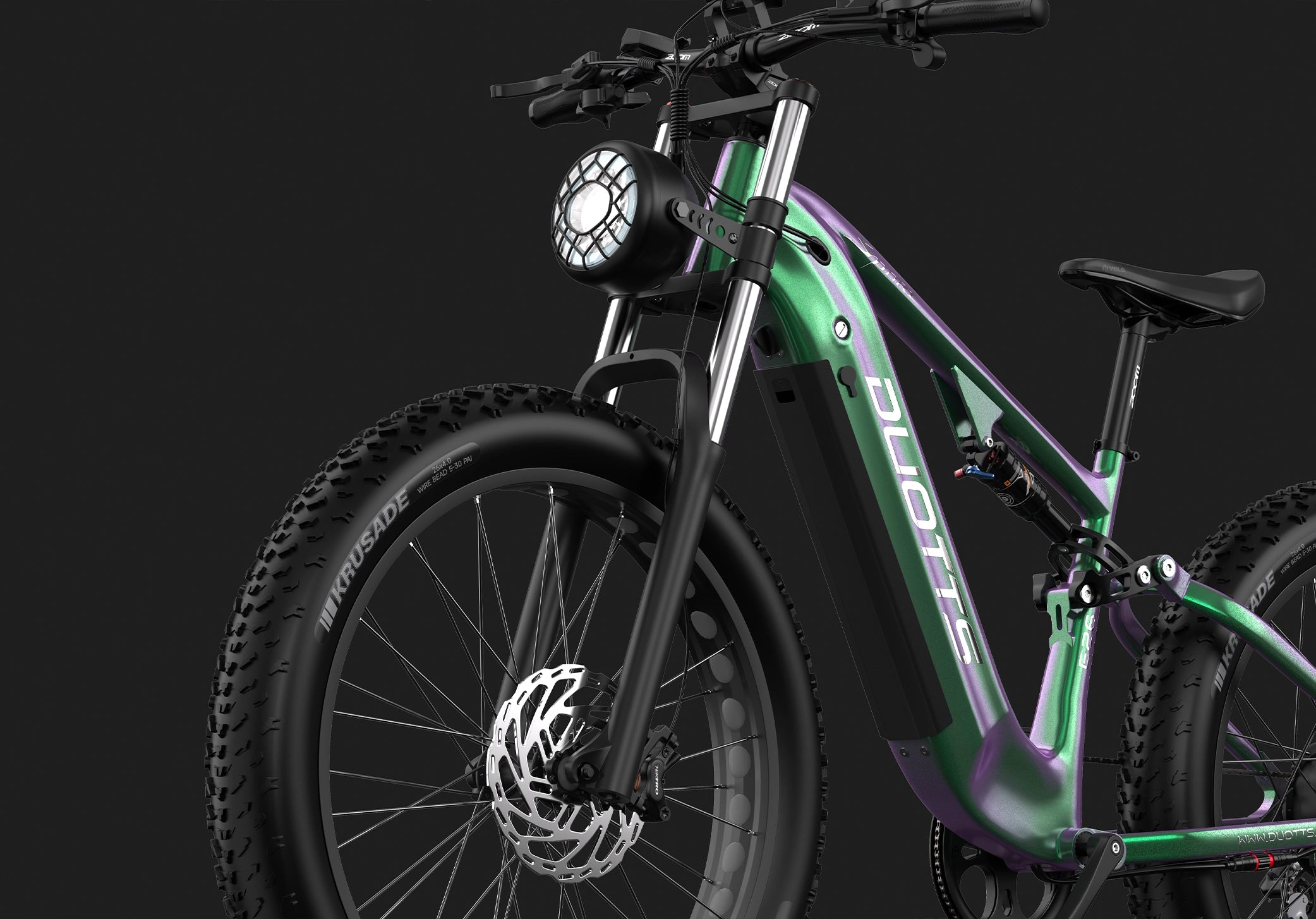 The Duotts E26 electric mountain bike for sale features a lightweight aluminum frame, a torque sensor for a smooth ride, and a stylish color-changing finish. Duotts bicycle with electric assist offers durability and dynamic design.