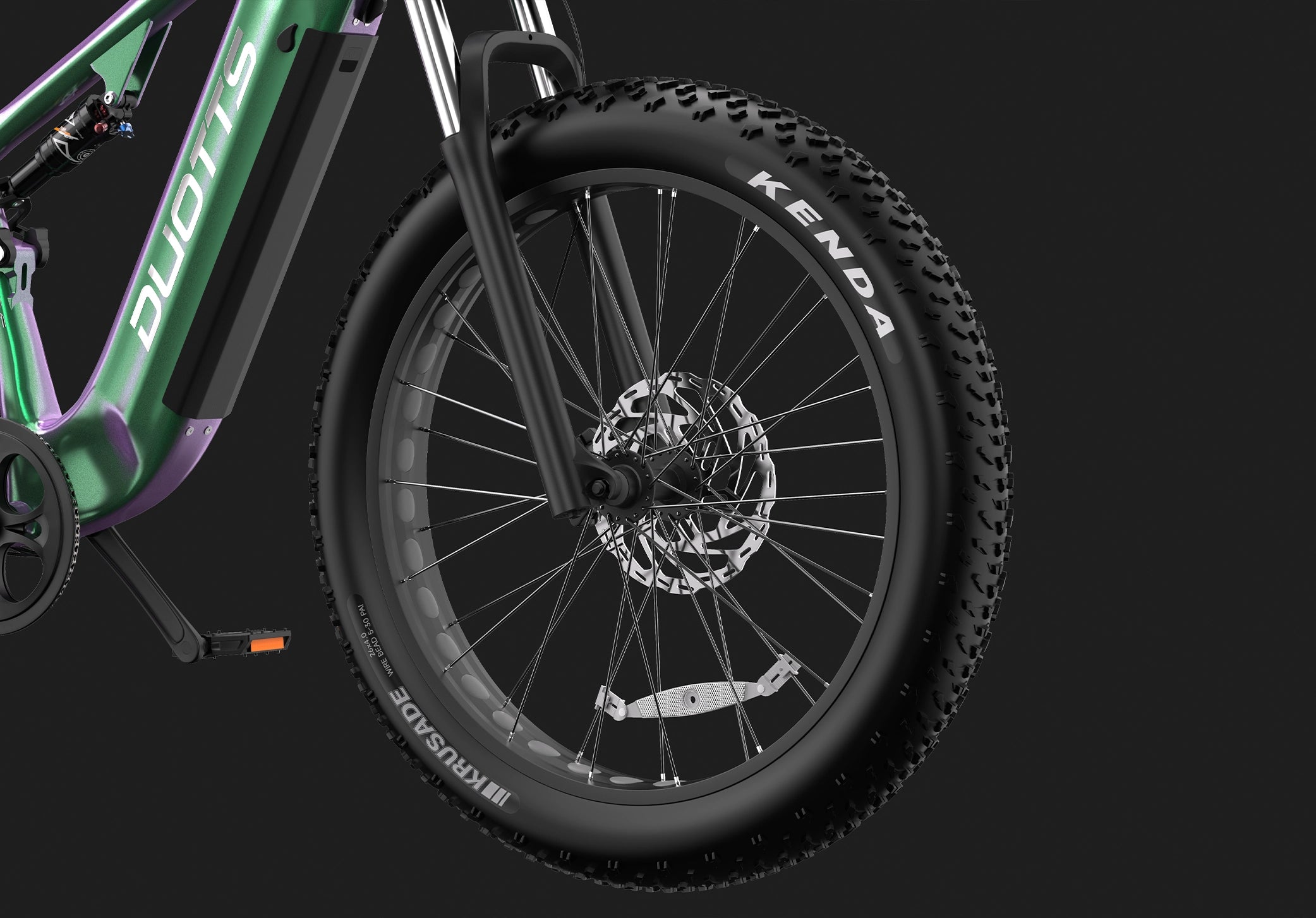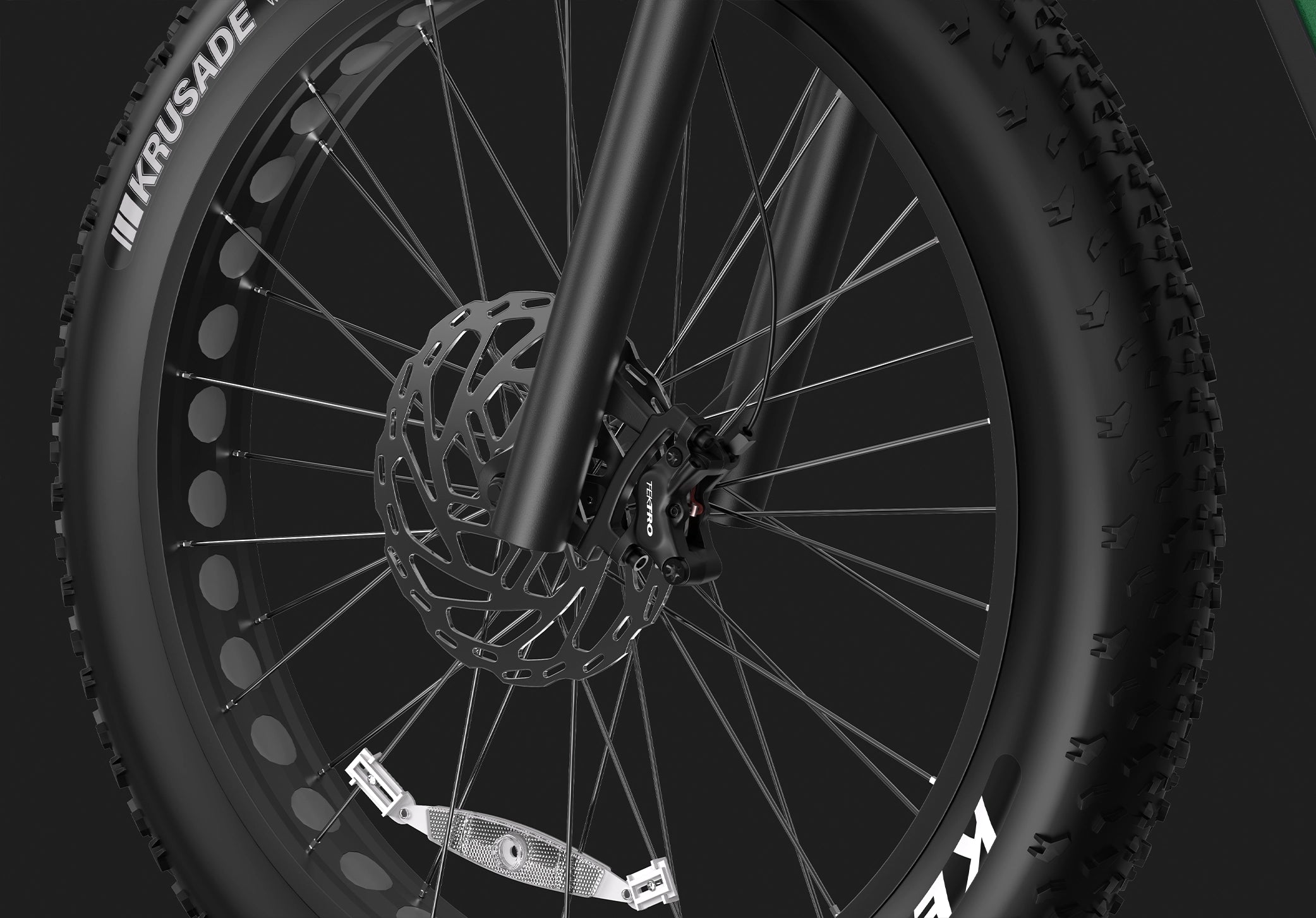 Equipped with TEKTRO's four-piston hydraulic brake system and 203MM x 2.3MM rotors, this electric bike delivers exceptional braking power. Whether descending steep hills or making quick stops, you'll experience precise control and enhanced safety. The four-piston design ensures smooth, rapid stops with minimal stopping distance, making it perfect for city commutes and off-road adventures alike.