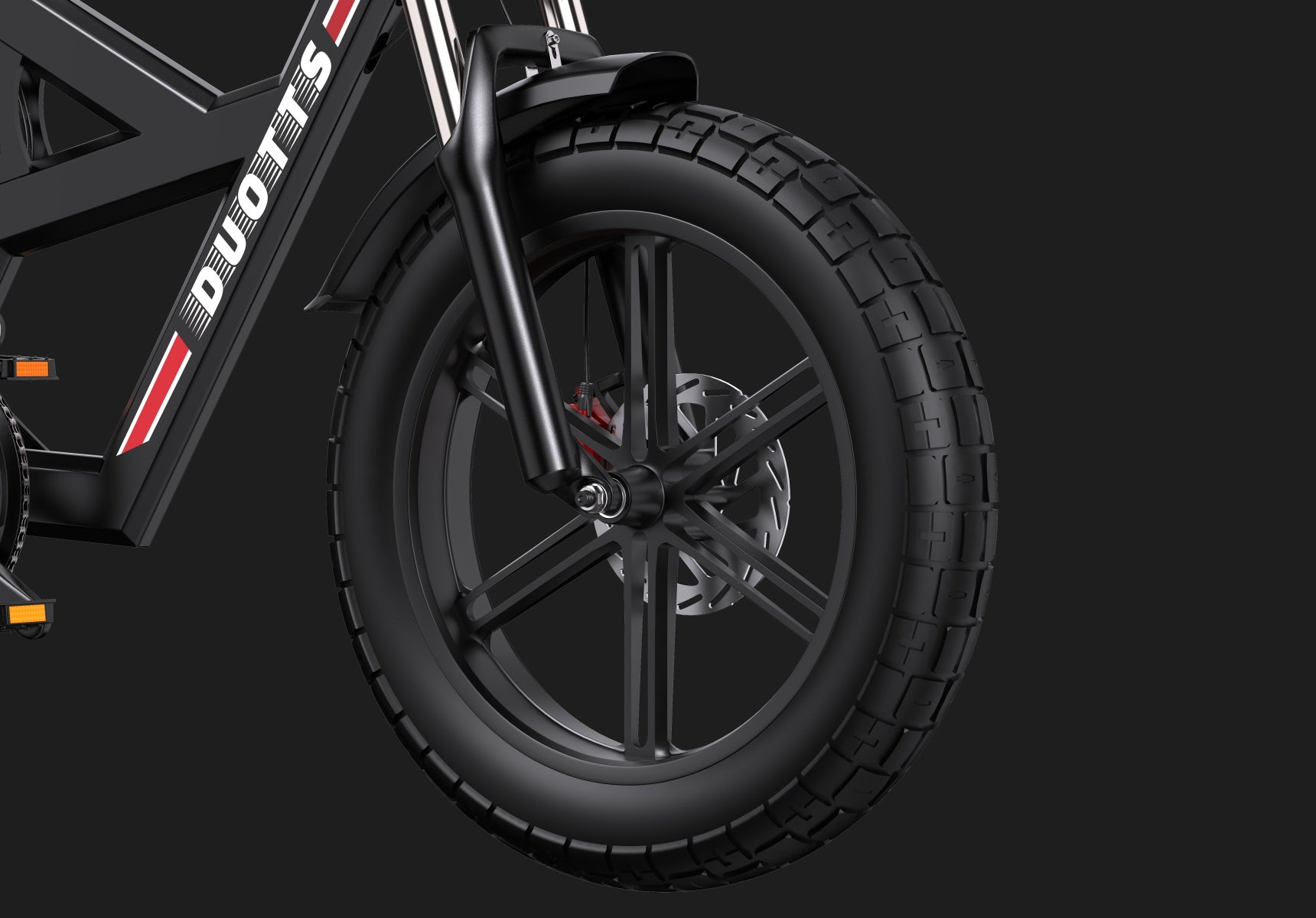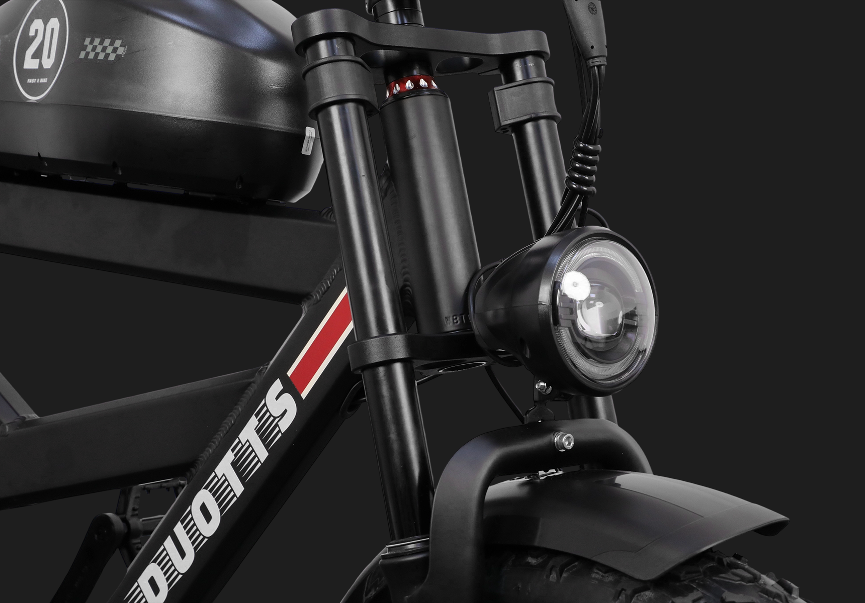 The F20 isn’t just an e-bike—it’s a beast built with motorcycle DNA. With a massive 52V 27Ah battery and motor delivering up to 2000W peak power, it delivers explosive acceleration and a ride that feels electric motorcycle-grade. Its fat tires, hydraulic brakes, and heavy-duty suspension system make it unstoppable on dirt, sand, or city streets. Built for thrill-seekers, the F20 dominates every road and every trail with raw power and torque.